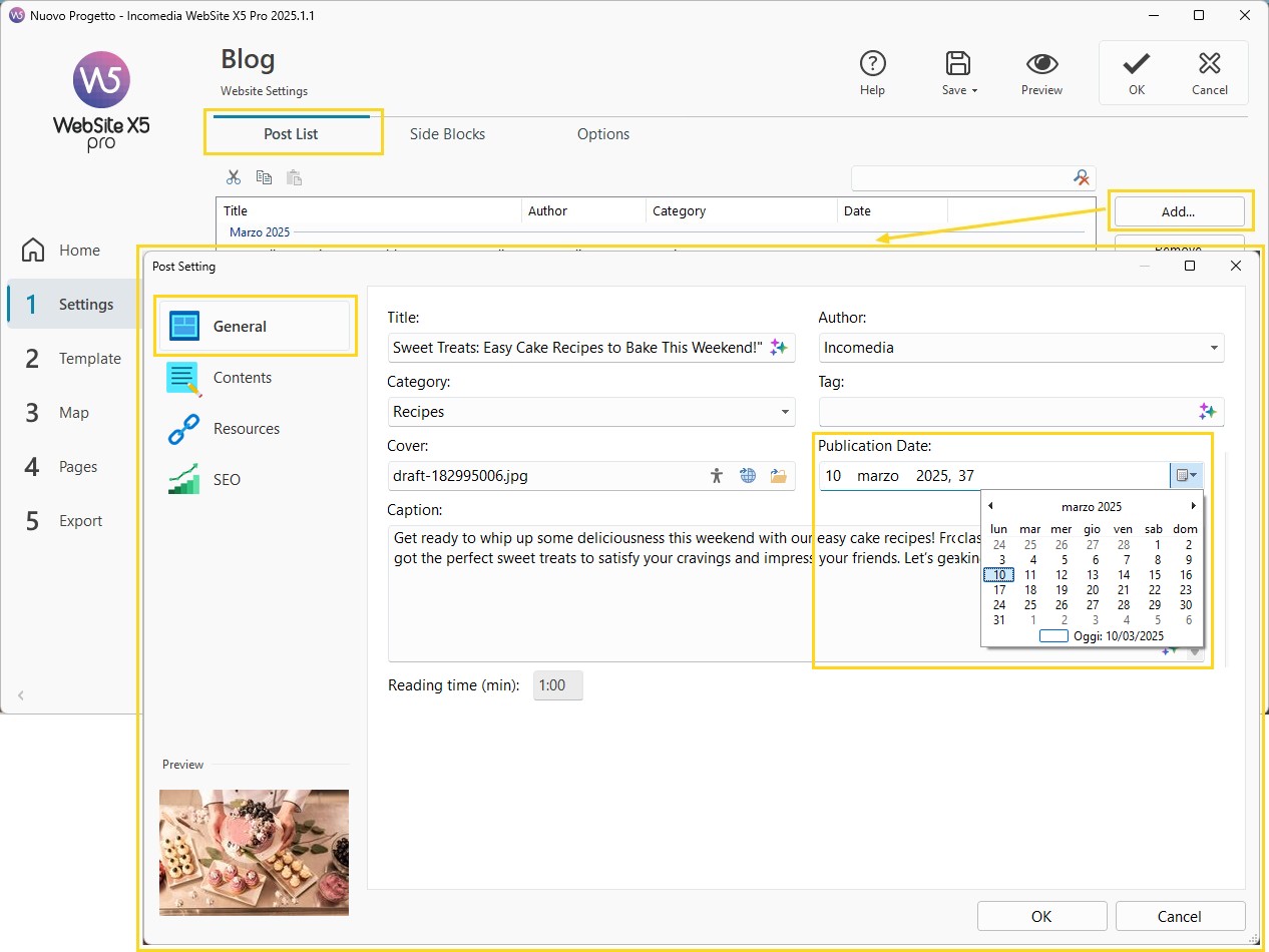 - In order to schedule the post, use the Publication Date option while in the Post Settings>General window to set the date and time when the post should be published.