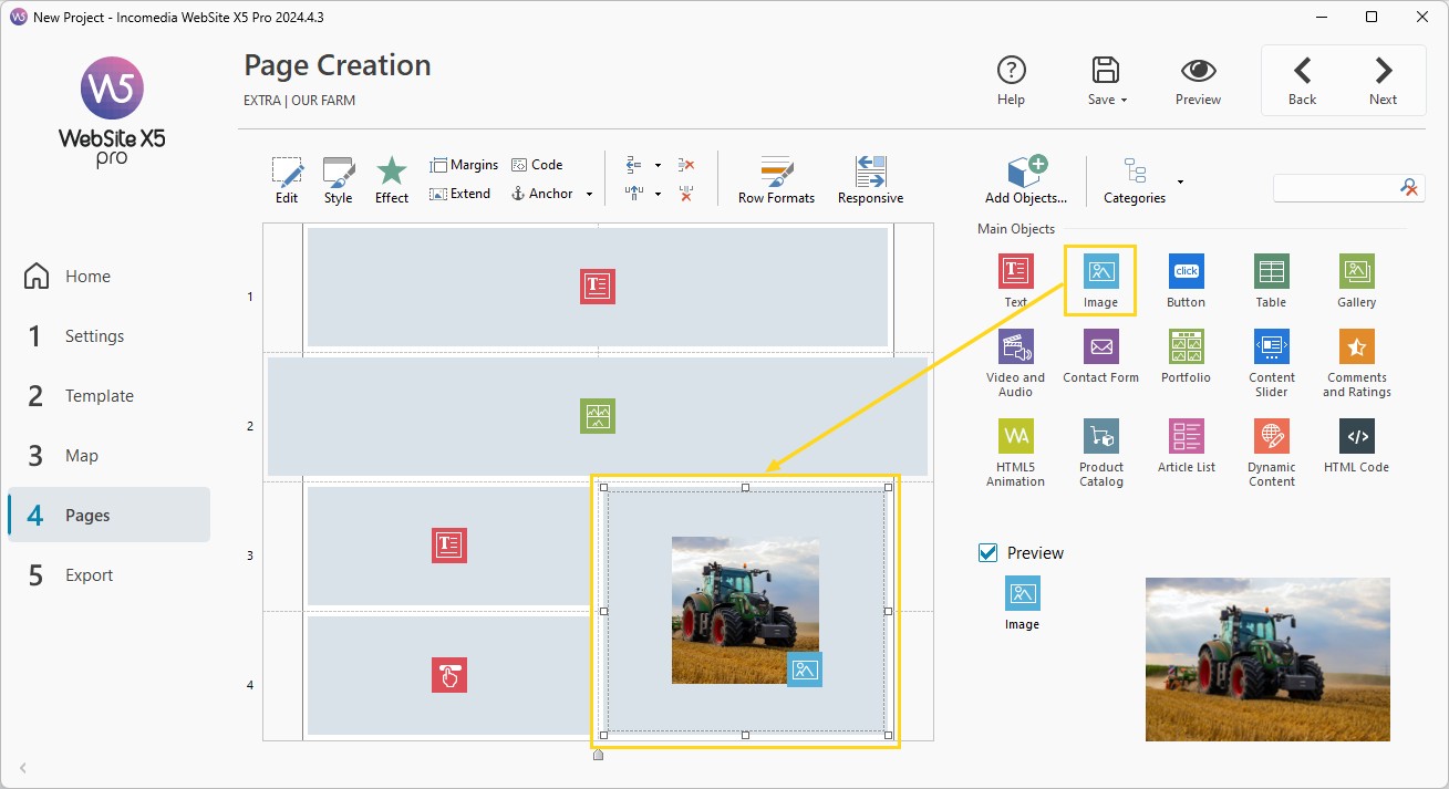 WebSite X5 uses a unique page layout method where you can work in a completely visual way while creating your Pages.