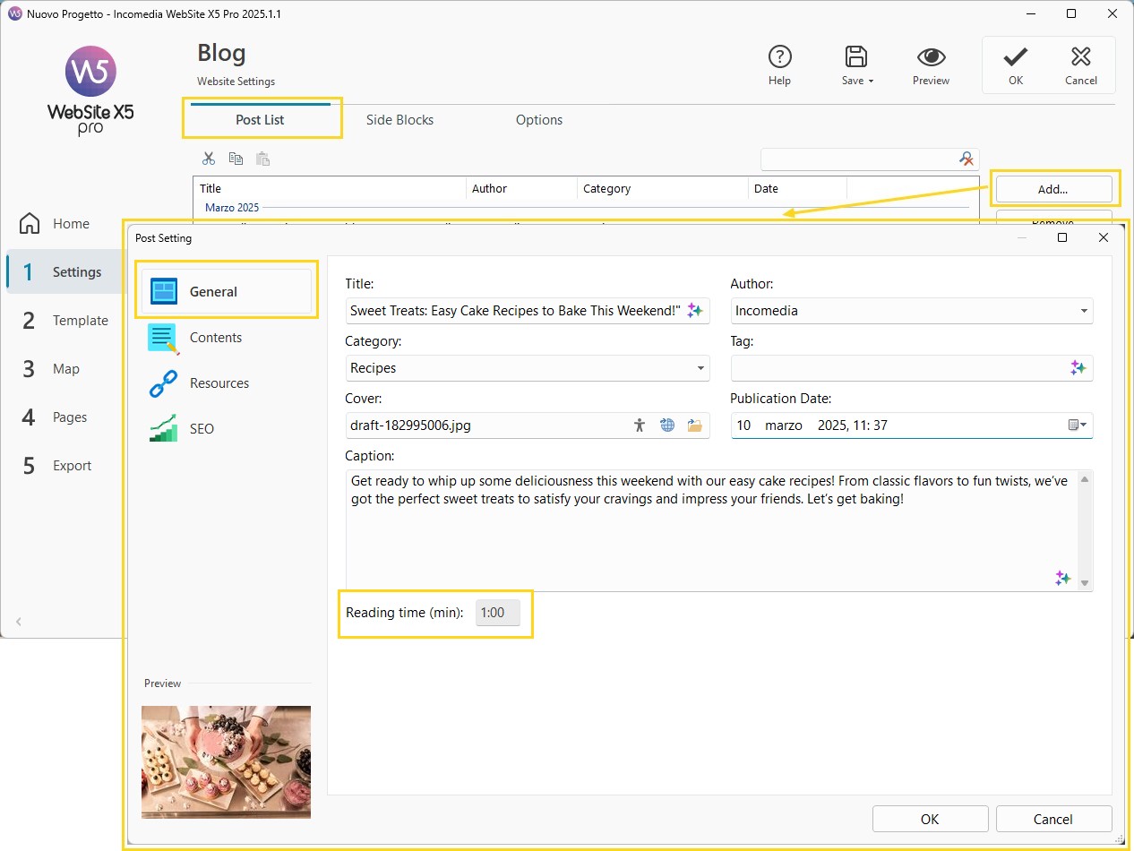 The reading time of articles is automatically estimated by WebSite X5. Let’s see how you can adjust this estimate and how to choose whether or not to display this information for your readers.