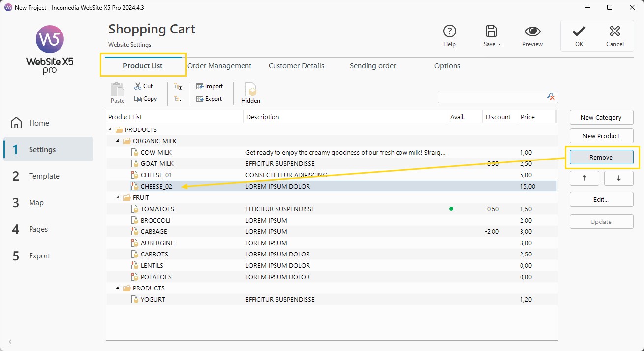 - Seleziona il prodotto che vuoi rimuovere.