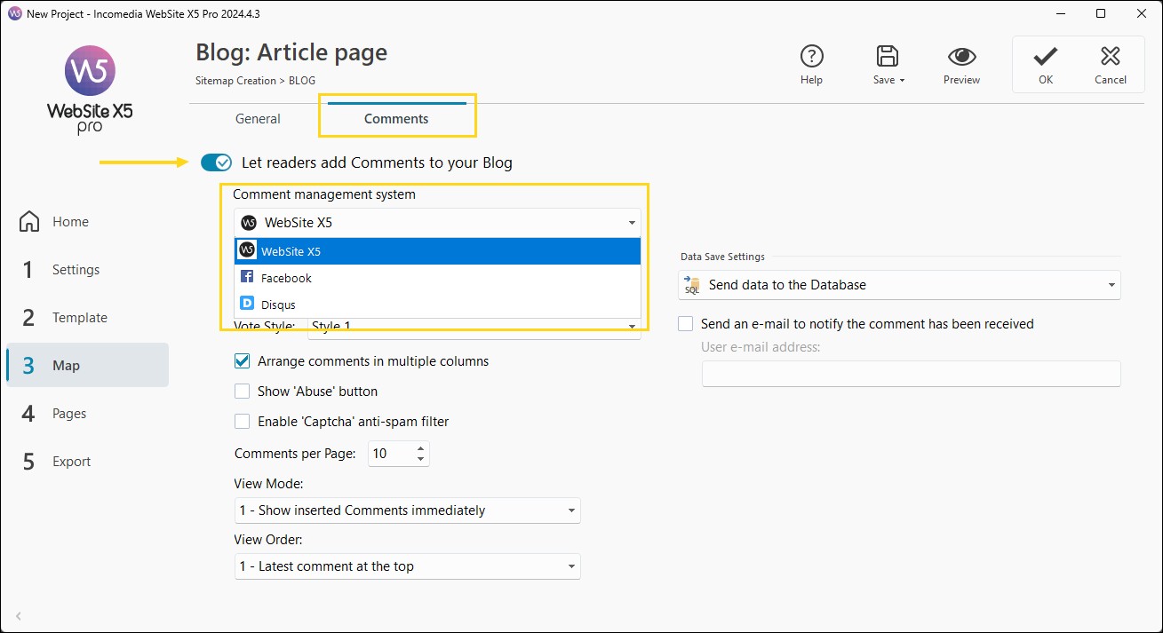 - Seleziona il tipo di Sistema di gestione dei commenti che preferisci utilizzare scegliendo tra: